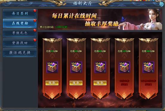 每日在线时长达到需求,可以领取丰厚的灵石奖励!